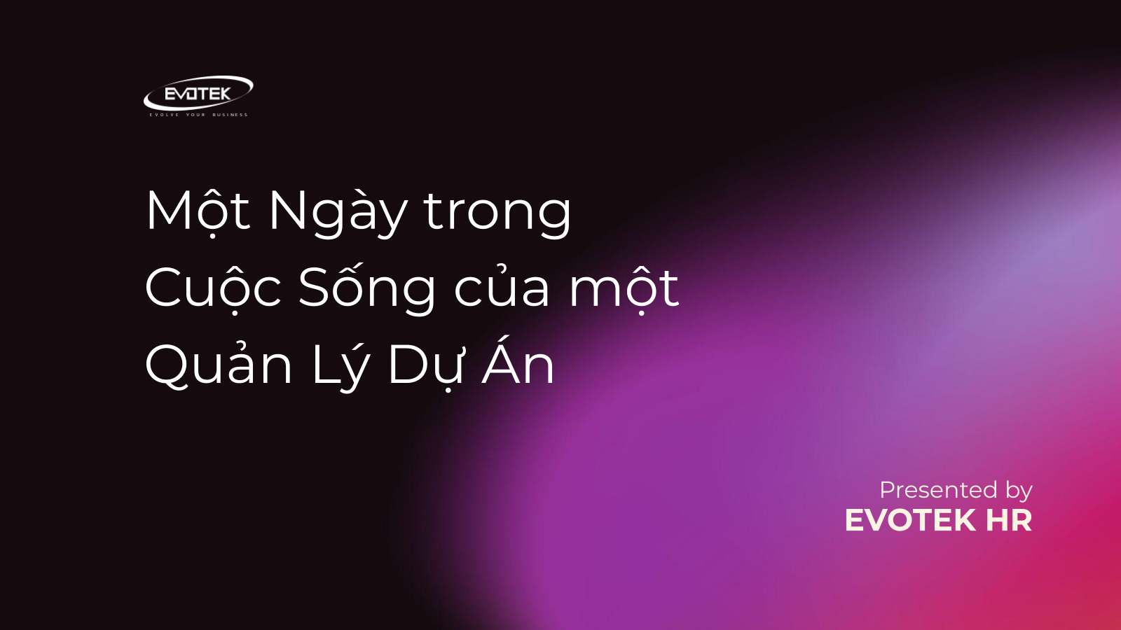 Mặc dù mỗi ngày đều khác nhau, nhưng đây là một cái nhìn về một ngày điển hình của một Quản Lý Dự Án tại Evotek: